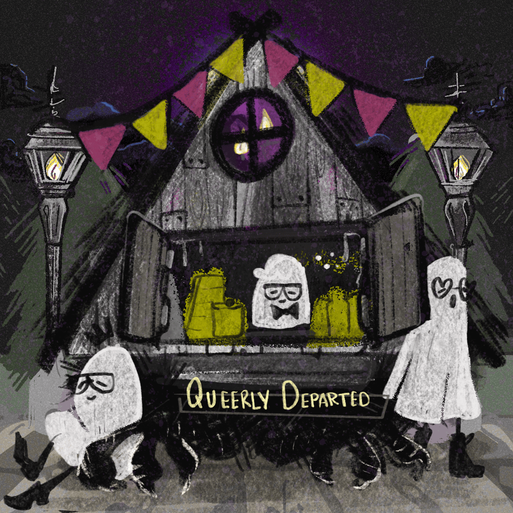 8x8 Print of your favorite shop you found in the woods! And it's haunted. By Ghosts. Does the shop have feet?